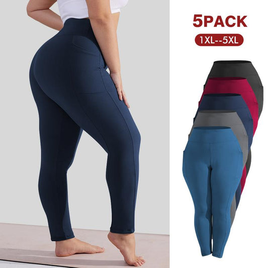 5PCS Soft Leggings for Women High Waisted Tummy Control with Pockets Workout Yoga High Waisted the Hugger Legging Gym Sports Tight Stylish Activewear