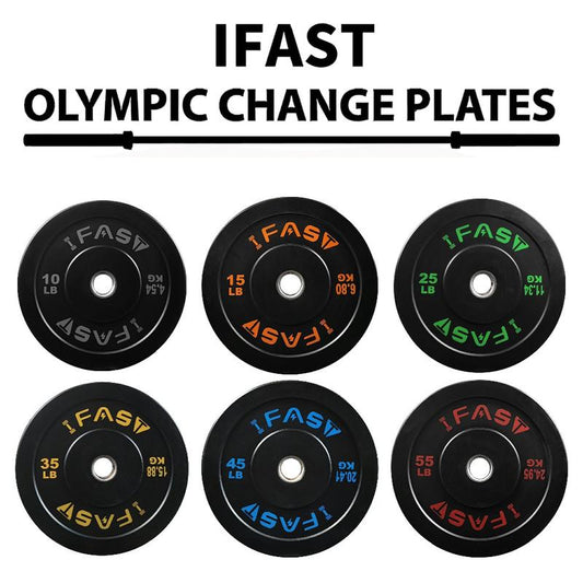IFAST Olympic Bumper Plates with 2-Inch Steel Hub Home Gym Strength Training Weight Plate Floor Protection Fitness Equipment Dumbbell and Barbell
